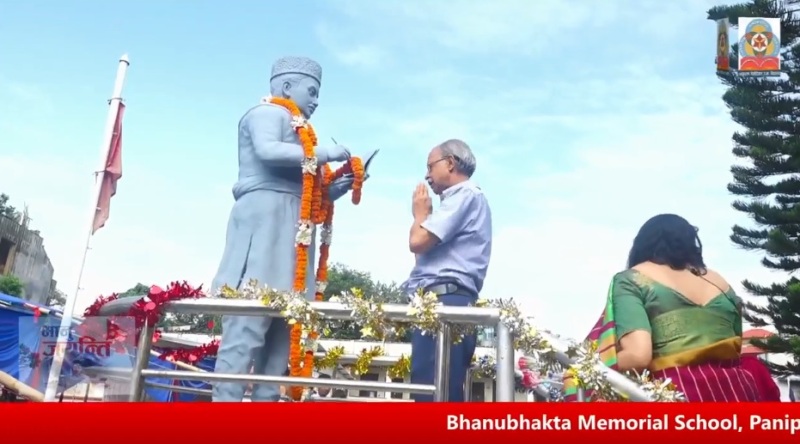 काठमाडौं, ३० असार – आदिकवि भानुभक्तको २११ औं जन्म जयन्ती मनाउने क्रममा काठमाण्डौ पानीपोखरी स्थित भानुभक्त मेमोरियल विद्यालयले पनि विभिन्न कार्यक्रम गरी मनाएको छ । विद्यालयले आफ्नो ५९ औं स्थापना दिवस तथा २११ औं भानु जयन्ती मनाएको हो । प्रथम चरणको कार्यक्रम अन्तर्गत विहान विभिन्न बाजागाजा, झाँकी सहित नगर परिक्रमा गरी सम्पन्न गरेको थियो ।