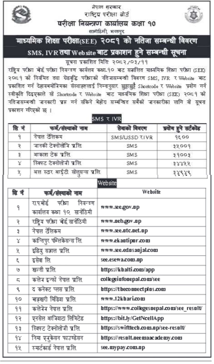 SEE २०८१ को नतिजा प्रकासन सम्बन्धी जानकारी ।